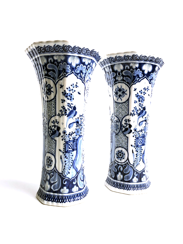 Zwei Künersberger Fayence Zwillingsvasen 1745-1765. Jakob von Küner. Delfter Stil. Höhe je 29 cm, ∅ Lippe (oben) 14,5 cm, ∅ Fuß 10,5 cm, ∅ Bauch ca. 8-9 cm. … [Weiterlesen...] Infos zum Plugin Künersberger Fayence Zwillingsvasen