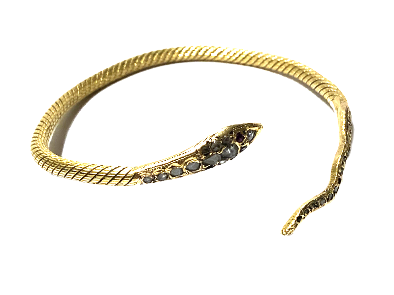 14. Oktober 2021Armreif Schlange Armreif in Form einer Schlange. 20 ct. Gold, Altschliffdiamanten, Rubine, England ca. 1880 … [Weiterlesen...] Infos zum Plugin Armreif Schlange