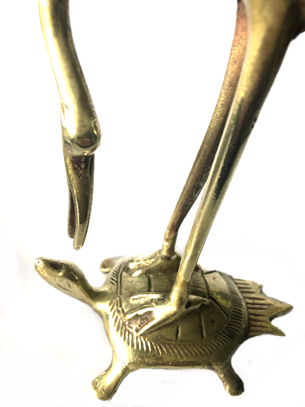 „Kranich auf Schildkröte“, ca. 1960, Messing, h 14 cm