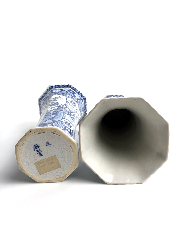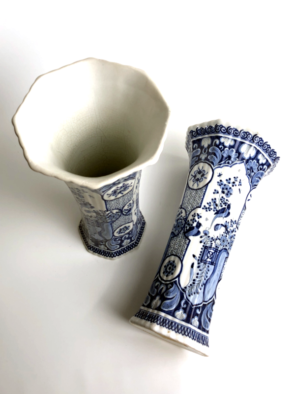 Jakob von Küner. Delfter Stil. Höhe je 29 cm, ∅ Lippe (oben) 14,5 cm, ∅ Fuß 10,5 cm, ∅ Bauch ca. 8-9 cm.